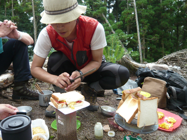 そして山の上で食べる出来立てアツアツのホットサンド。