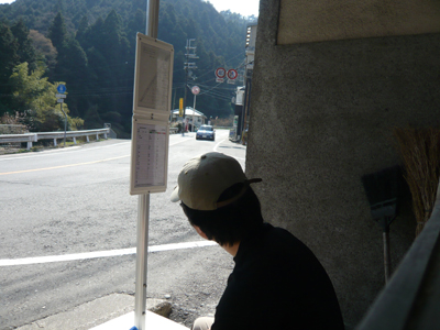 写真:バス停で茫然自失のワタクシ