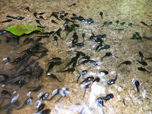 写真(真ん中):そのコ?小さなおたまじゃくし。うじゃうじゃいました。