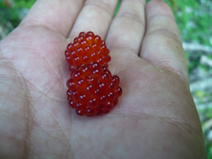 写真(右):野イチゴ。甘酸っぱくて疲れたカラダをリフレッシュ!!
