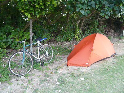 で、今日はそのまん丸の古宇利島を半周回ったところでテント泊。