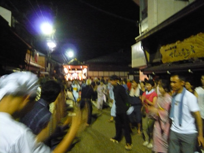 スタート時に大雨が降って盆踊りの参加が危ぶまれましたが夜半に雨も止み、盆踊りの輪に加わり時間も忘れて最終の朝4時まで踊り倒し。