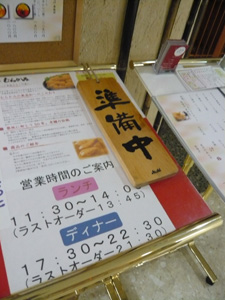 「準備中 営業時間のご案内 ランチ11:30~14:00 ディナー17:30~22:30」(泣)