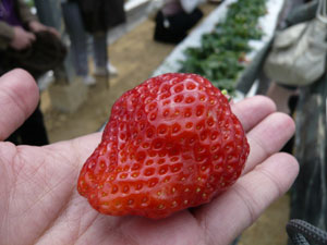 それに比べて畑で完熟状態のイチゴ。